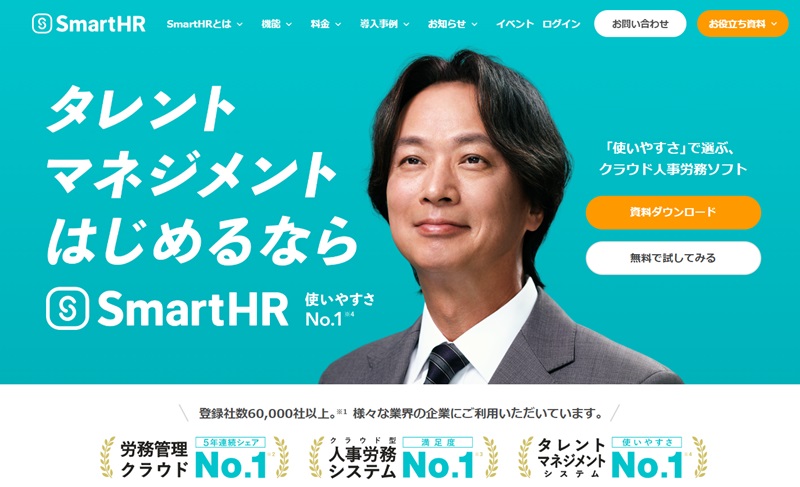「SmartHR」は、株式会社SmartHRによる、従業員情報を一元管理できるクラウド型労務管理システムです。