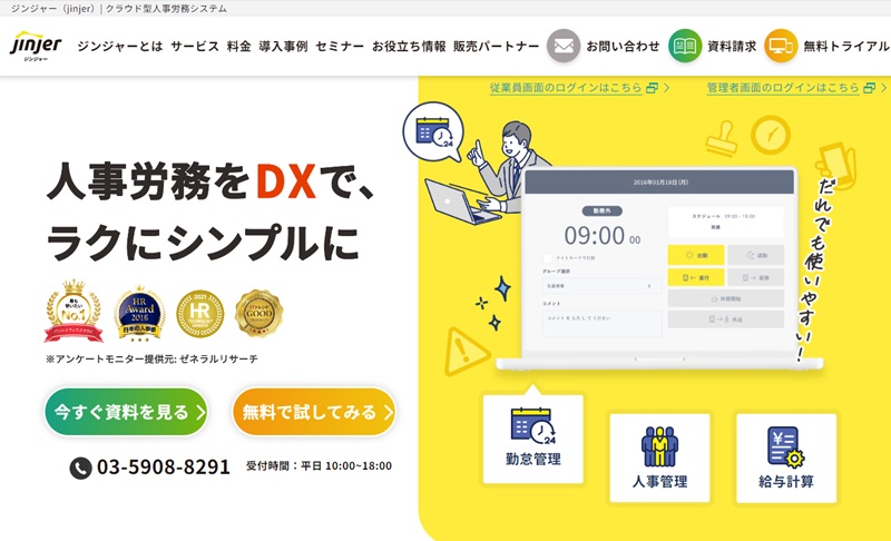 「jinjer」は、jinjer株式会社が展開するクラウド型労務管理システムです。