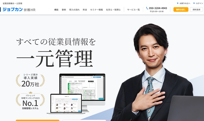 あらゆる労務業務をシステム上で行うことが可能な、シリーズ累計導入実績20万社以上を突破するシステムです。
