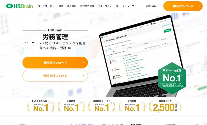 人事労務のペーパーレス化・効率化を実現する「HRBrain労務管理」は、株式会社HRBrainが提供する人事労務管理システムです。