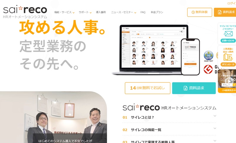 株式会社アクティブアンドカンパニーが運営する、人事労務システムの業務効率化を推進する「sai*reco」では、膨大な組織のデータを蓄積し、データを可視化して分析します。