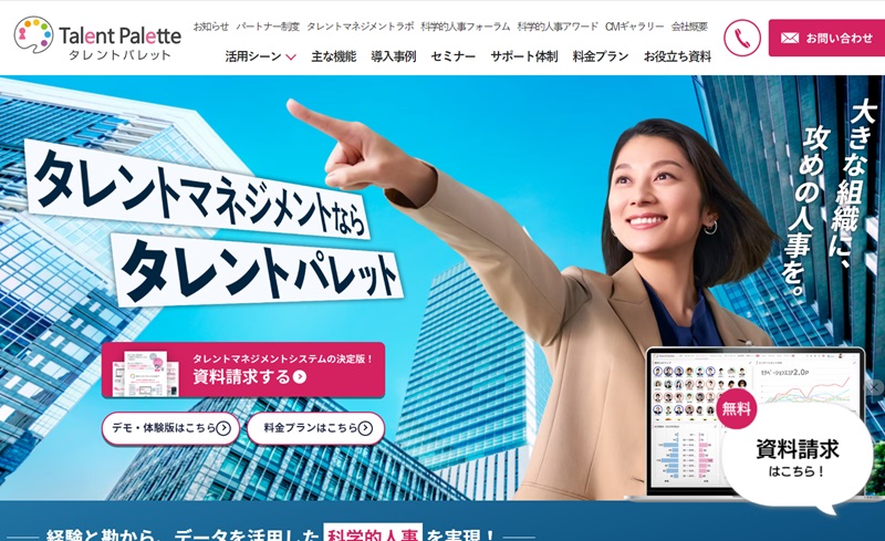 株式会社プラスアルファ・コンサルティングが提供する人事労務システム「タレントパレット」では、人材データ活用・科学的人事を実現しています。