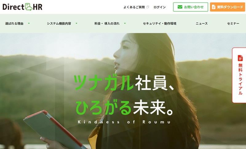 株式会社エムケイシステムが提供するクラウド型人事・労務オールインワン電子システム「DirectHR」では、マイナンバー管理をはじめ、入社手続きや雇用契約書や雇用保険証などを安全に管理できます。