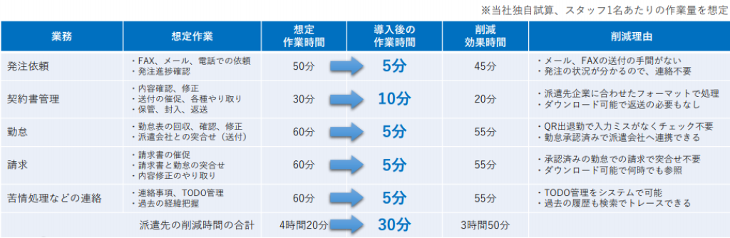 これまで派遣先企業は、派遣会社やスタッフと電話やFAXなどでやり取りする必要がありました。