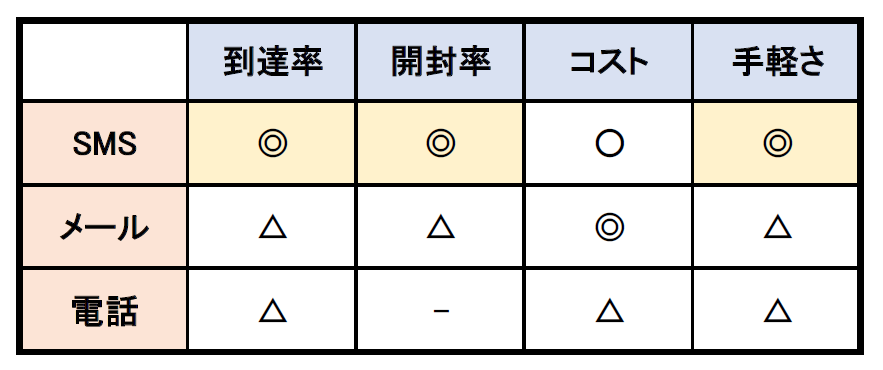 その一方でSMS配信は、郵送やメールと異なり以下の点から高いコストパフォーマンスが出やすいのでおすすめです。