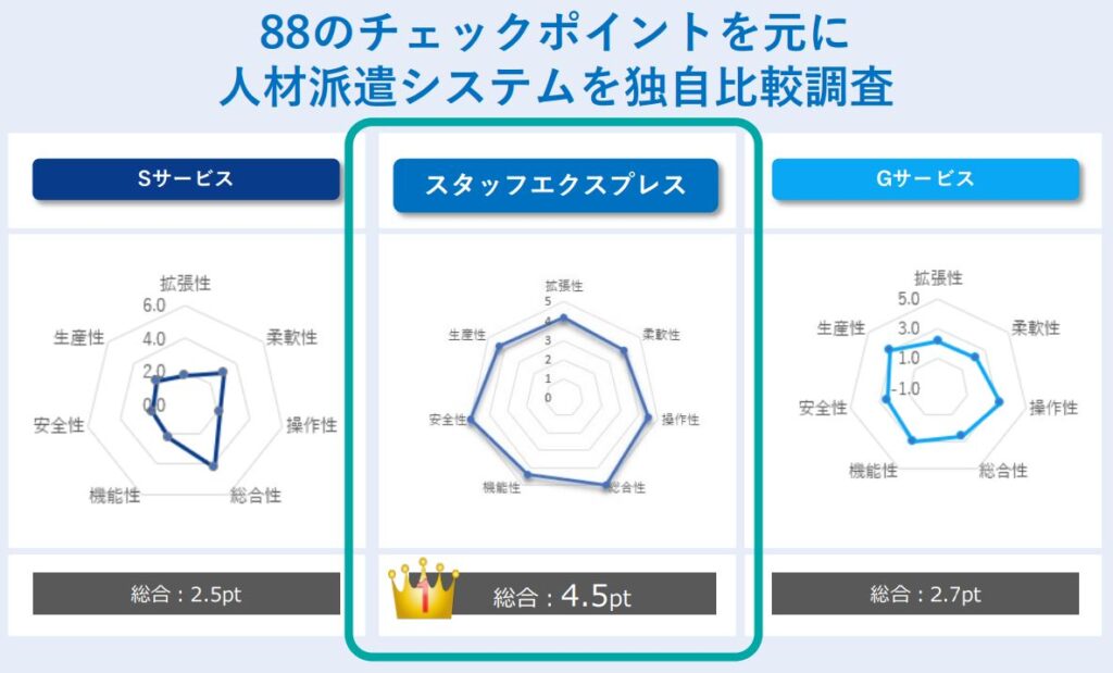 また、以下5つの点でSTAFF EXPRESSは特に優れていることが分かりました。