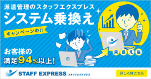 >>94%以上のお客様が満足!人材派遣管理システム『STAFF EXPRESS(スタッフエクスプレス)』について詳しくはこちら<<